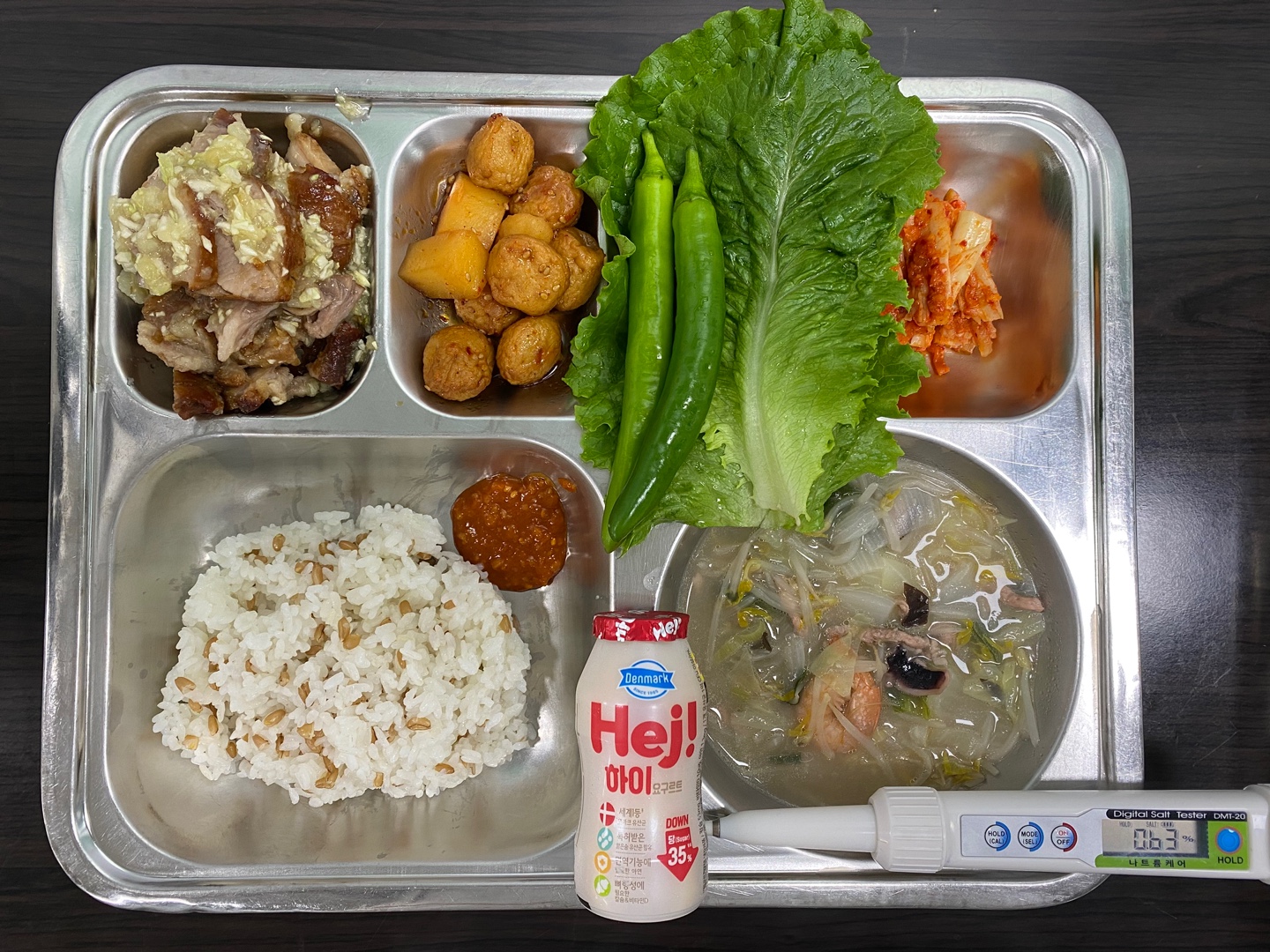 5월 15일 중식![]() ![]() ![]() 5월 15일 중식 <일당!오십!실천의날> 칼슘파로쌀밥 나가사끼짬뽕국(염도0.63) 훈연통삼겹구이/알룰로스마늘소스 볼어묵감자조림 상추/풋고추/쌈장(저당) 배추김치 요구르트(저당)