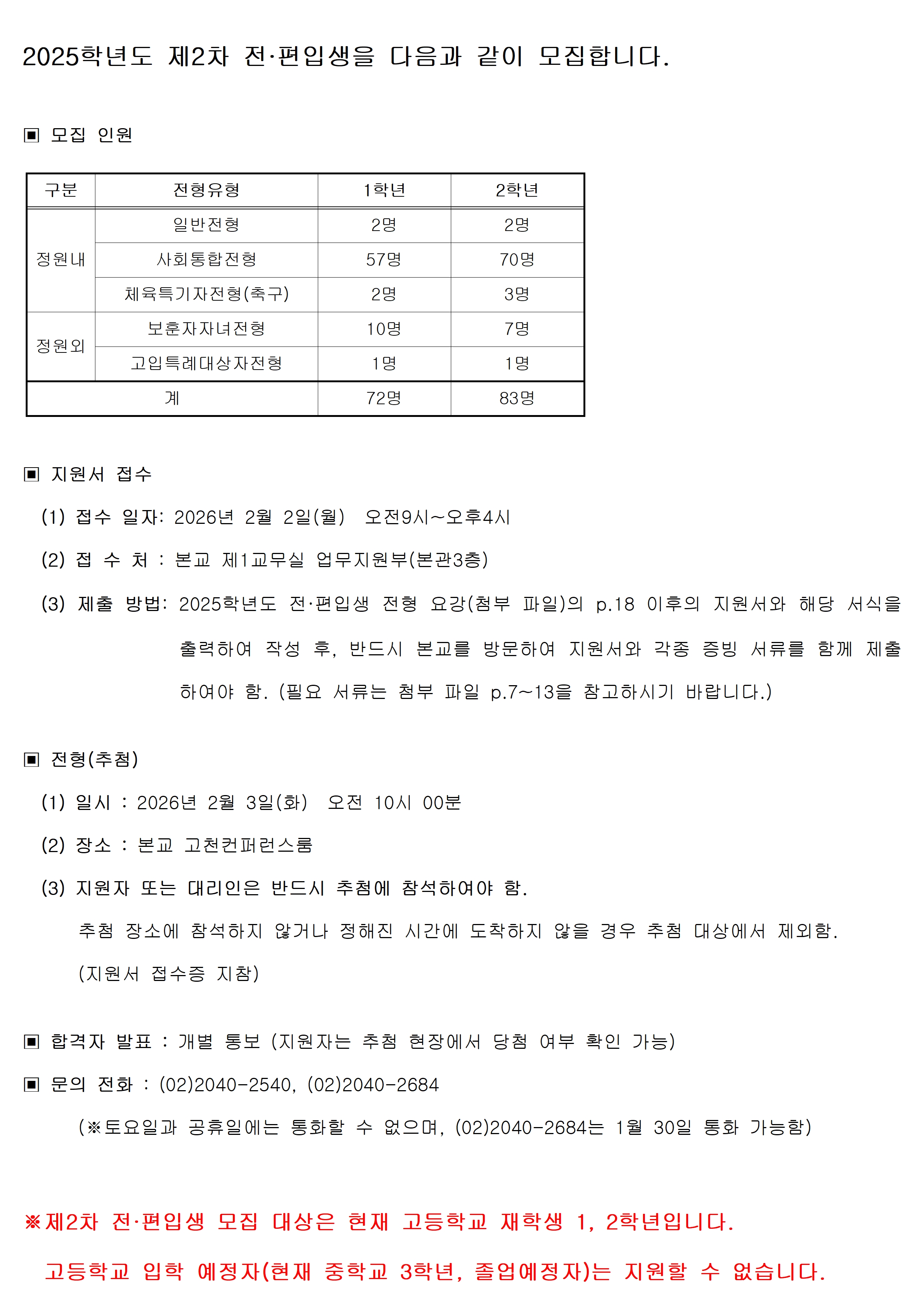 HOME > 입학안내 > 전편입학안내 > 전편입학모집공고